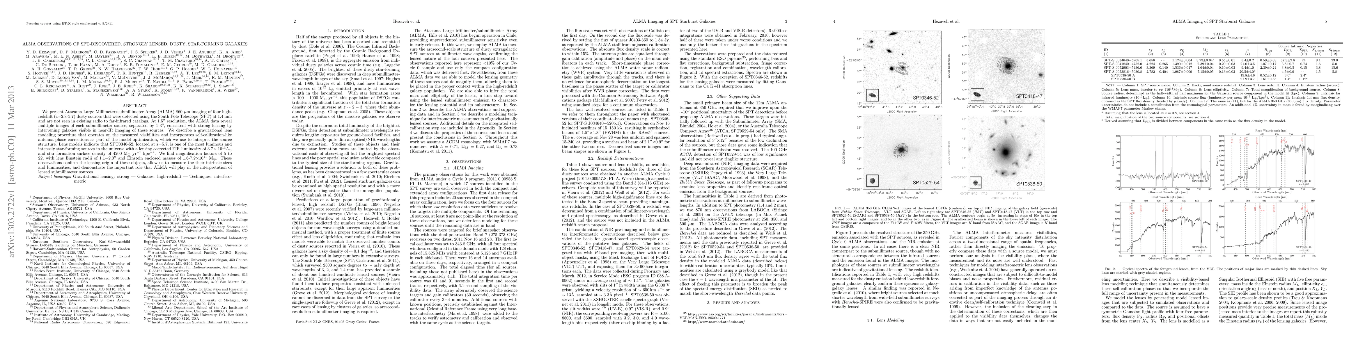 ALMA observations reveal multiple images of four high-redshift, dusty star-forming galaxies detected via the South Pole Telescope, confirming their lensing origin and providing insights into their intrinsic properties, including the exceptionally luminous SPT0346-52. The study highlights ALMA's critical role in interpreting lensed submillimeter sources.