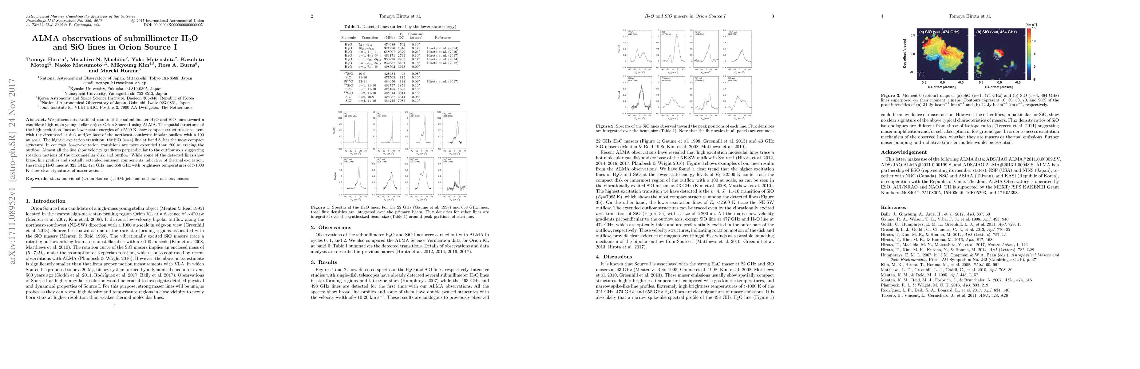 ALMA observations reveal compact structures in high-excitation lines around Orion Source I, indicating circumstellar disk and outflow base activity. Strong H2O lines suggest maser action, while velocity gradients hint at rotational motions.