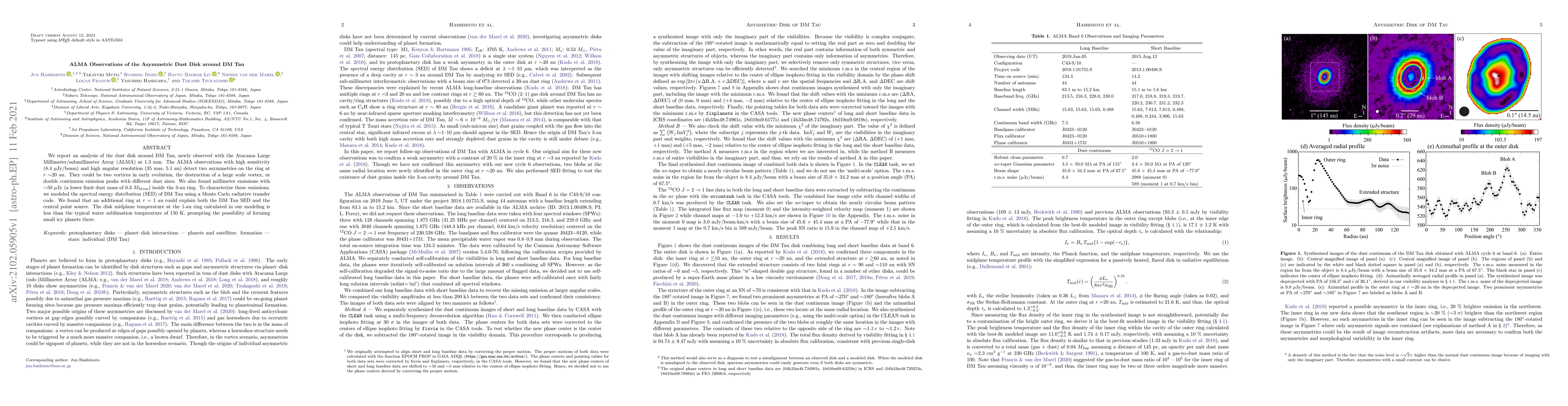 Researchers used ALMA to observe the dust disk around DM Tau, finding two asymmetries and detecting millimeter emissions inside a 3-au ring, which could indicate the formation of small icy planets.