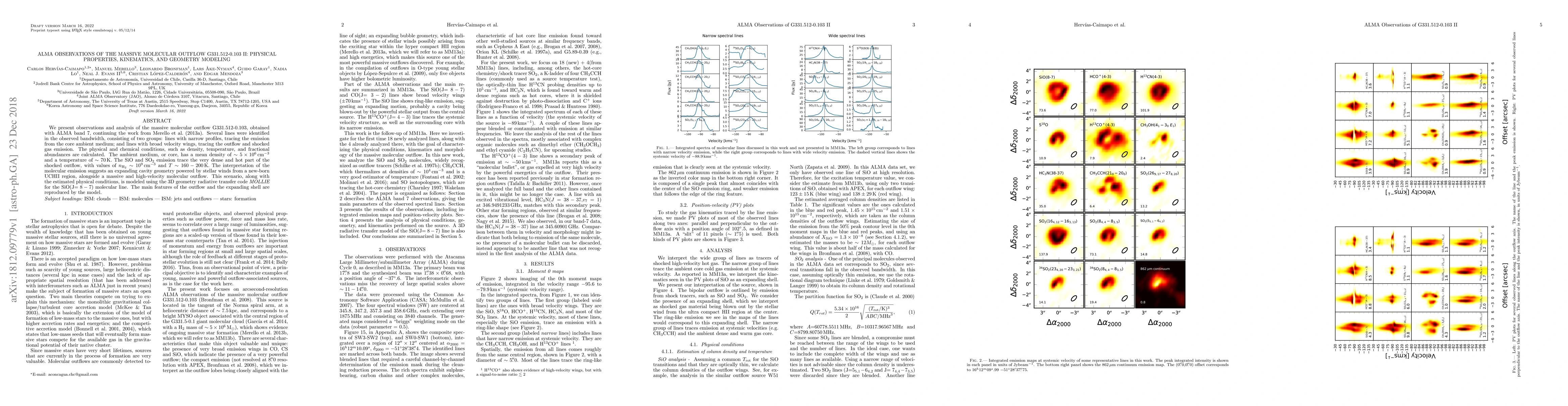 We present observations and analysis of the massive molecular outflow G331.512-0.103, obtained with ALMA band 7, continuing the work from Merello et al. (2013). Several lines were identified in the observed bandwidth, consisting of two groups: lines with narrow profiles, tracing the emission from the core ambient medium; and lines with broad velocity wings, tracing the outflow and shocked gas emission. The physical and chemical conditions, such as density, temperature, and fractional abundances are calculated. The ambient medium, or core, has a mean density of $\sim 5\times 10^6$ cm$^{-3}$ and a temperature of $\sim 70$ K. The SiO and SO$_2$ emission trace the very dense and hot part of the shocked outflow, with values of $n_{\rm H_2}\sim10^9$ cm$^{-3}$ and $T \sim 160-200$ K. The interpretation of the molecular emission suggests an expanding cavity geometry powered by stellar winds from a new-born UCHII region, alongside a massive and high-velocity molecular outflow. This scenario, along with the estimated physical conditions, is modeled using the 3D geometry radiative transfer code MOLLIE for the SiO(J$=8-7$) molecular line. The main features of the outflow and the expanding shell are reproduced by the model.