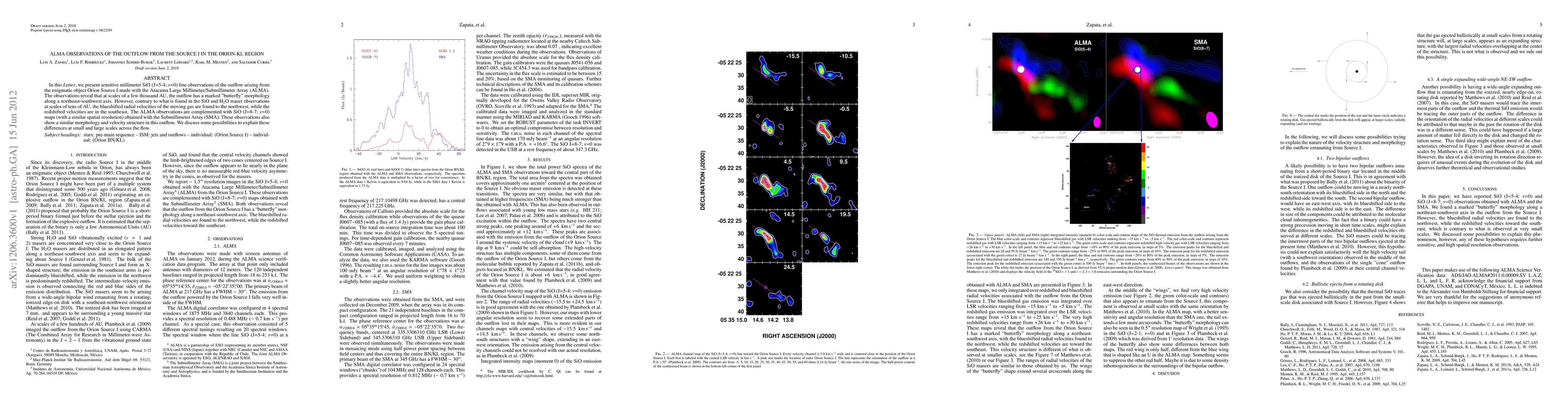 ALMA observations reveal a unique butterfly-shaped outflow from Orion Source I, with blueshifted gas moving northwest and redshifted gas southeast at scales of thousands of AU.