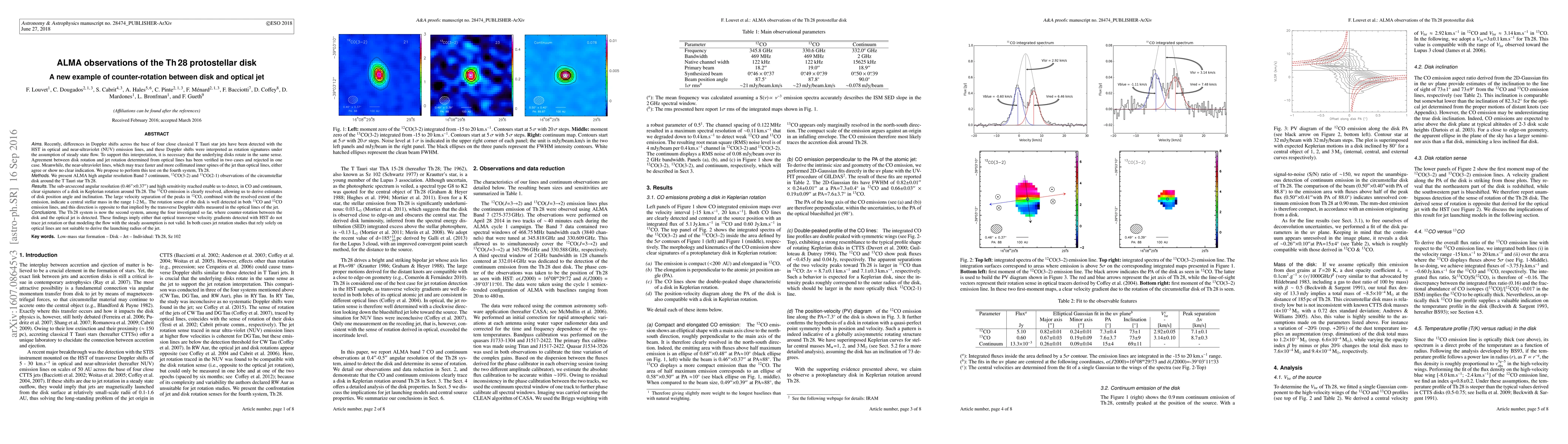 This study reveals the first ALMA detection of millimeter CO and continuum emission from Th28's accretion disk, providing insights into jet rotation studies and the nature of Th28.