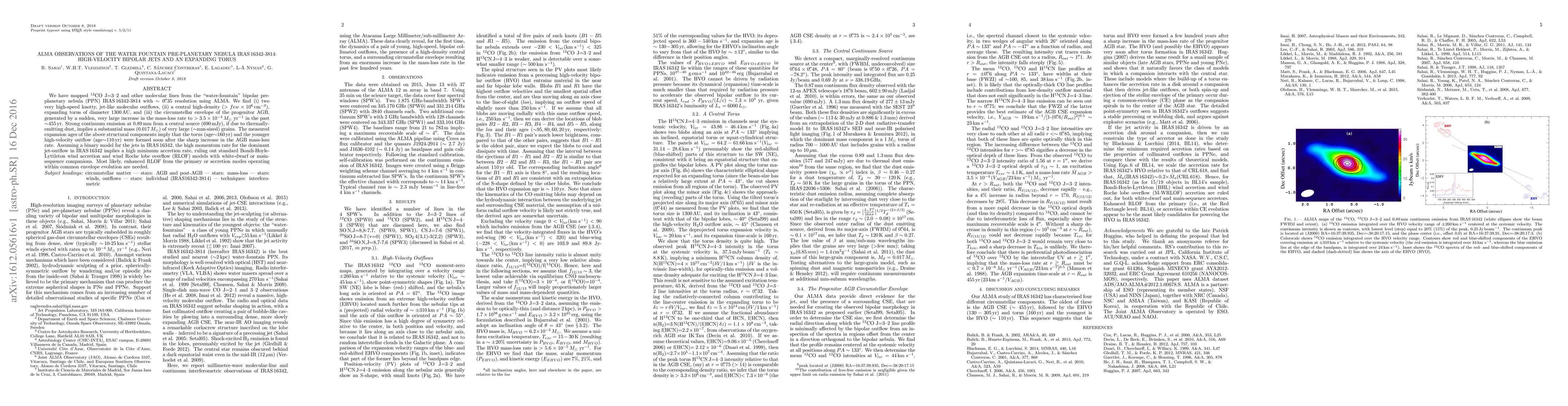 We have mapped 12CO J=3-2 and other molecular lines from the "water-fountain" bipolar pre-planetary nebula (PPN) IRAS 16342-3814 with ~0."35 resolution using ALMA. We find (i) two very high-speed knotty, jet-like molecular outflows, (ii) a central high-density (> few x 10^6 cm^{-3}), expanding torus of diameter 1300 AU, and (iii) the circumstellar envelope of the progenitor AGB, generated by a sudden, very large increase in the mass-loss rate to >3.5 x 10^{-4} Msun/yr in the past ~455 yr. Strong continuum emission at 0.89 mm from a central source (690 mJy), if due to thermally-emitting dust, implies a substantial mass (0.017 Msun) of very large (~mm-sized) grains. The measured expansion ages of the above structural components imply that the torus (age~160 yr) and the younger high-velocity outflow (age~110 yr) were formed soon after the sharp increase in the AGB mass-loss rate. Assuming a binary model for the jets in IRAS 16342, the high momentum rate for the dominant jet-outflow in IRAS 16342 implies a high minimum accretion rate, ruling out standard Bondi-Hoyle-Lyttleton wind accretion and wind Roche lobe overflow (RLOF) models with white-dwarf or main-sequence companions. Most likely, enhanced RLOF from the primary or accretion modes operating within common envelope evolution are needed.