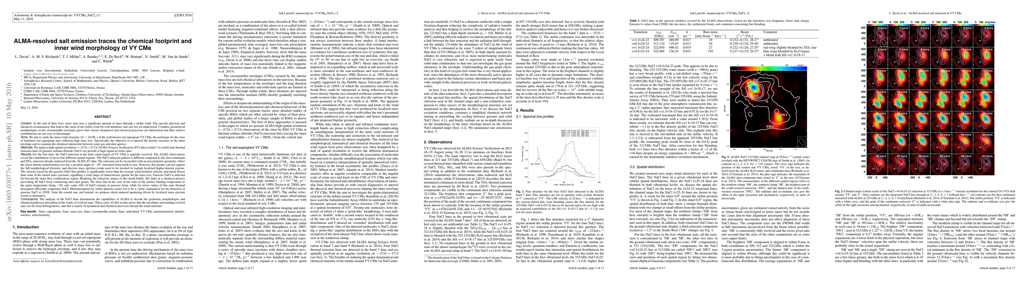 Researchers used ALMA observations to study VY CMa's inner wind structure, discovering spatially resolved NaCl emission that suggests a complex, axisymmetric geometry with localized mass ejection events.