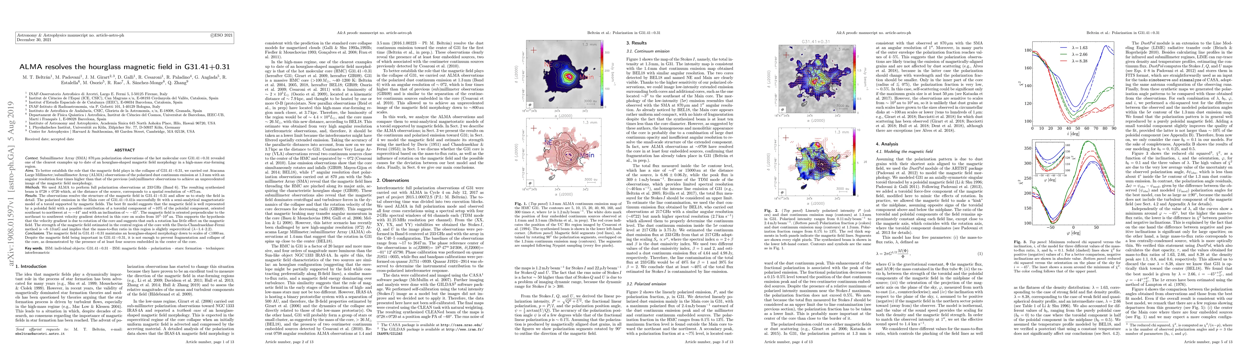 ALMA observations at 1.3 mm reveal a detailed hourglass magnetic field in the high-mass star-forming region G31.41+0.31, supporting the role of magnetic fields in the core's collapse and indicating a poloidal field with a minor toroidal component.