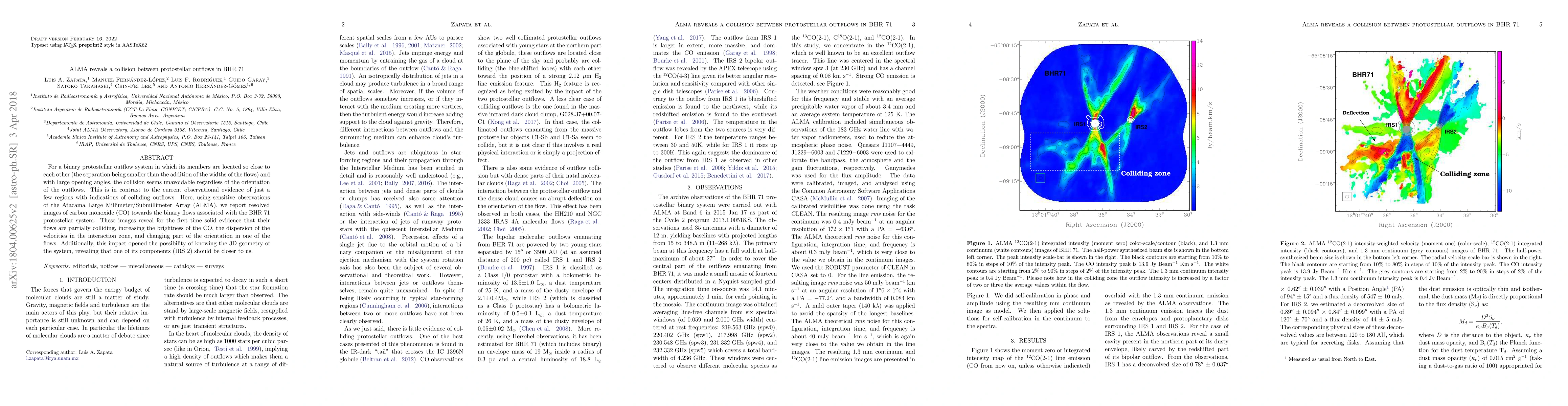The study utilized sensitive observations from the Atacama Large Millimeter/Submillimeter Array (ALMA) to resolve images of carbon monoxide (CO) towards binary flows associated with the BHR71 protostellar system, revealing collision evidence between the outflows.