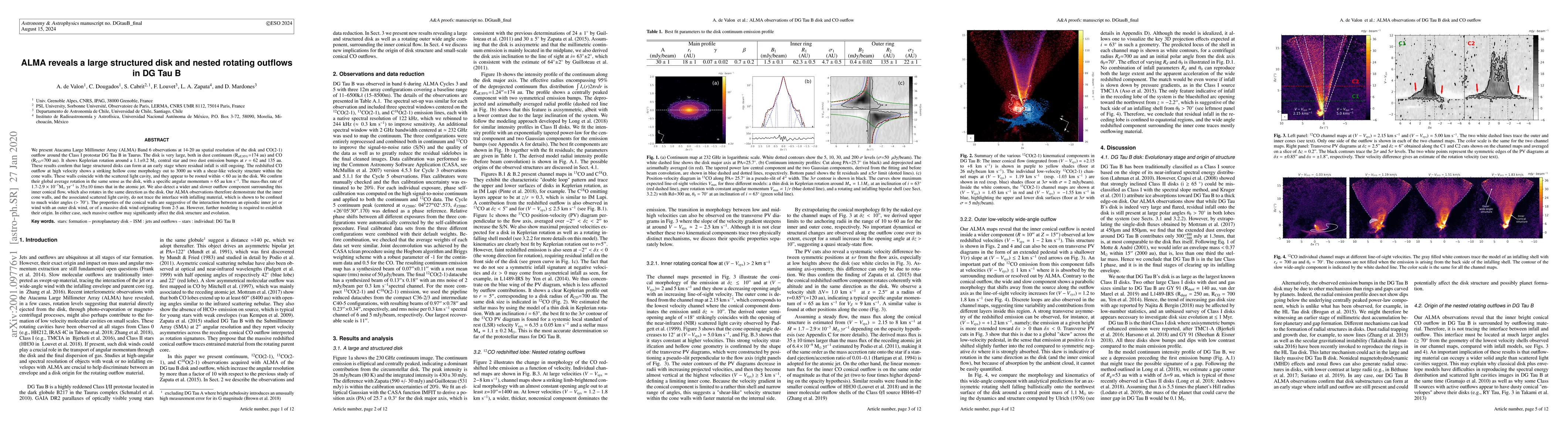ALMA observations reveal a large structured disk around DG Tau B with a nested rotating outflow, confirming that large disks can form early in protostar evolution.