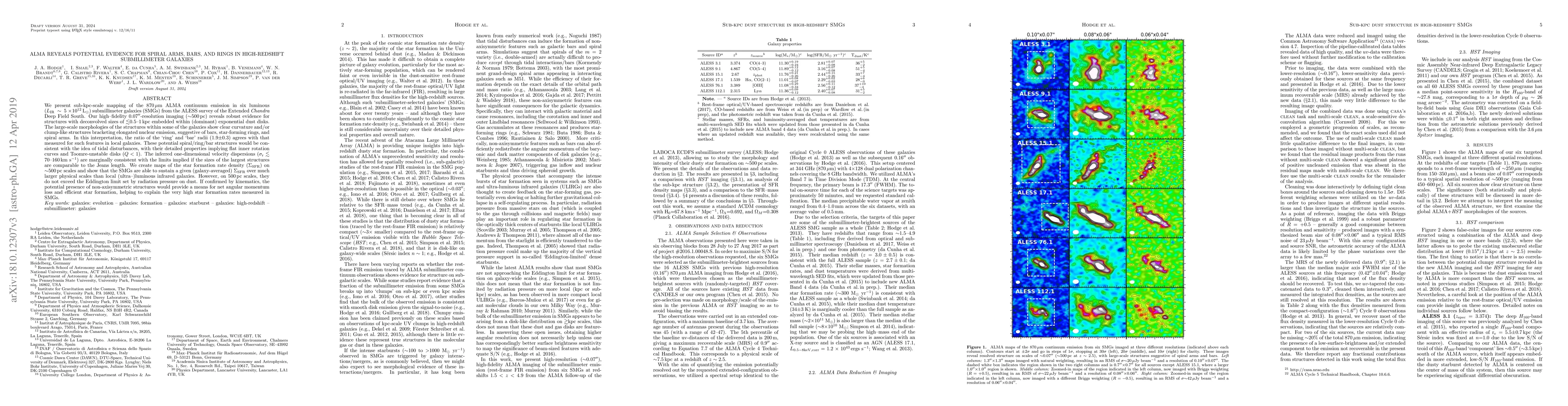 ALMA's high-resolution imaging uncovers potential spiral arms, bars, and rings in high-redshift submillimeter galaxies, suggesting tidal disturbances and efficient star formation mechanisms. The star formation rate density on small scales supports these galaxies' ability to sustain high star formation rates over larger physical scales.