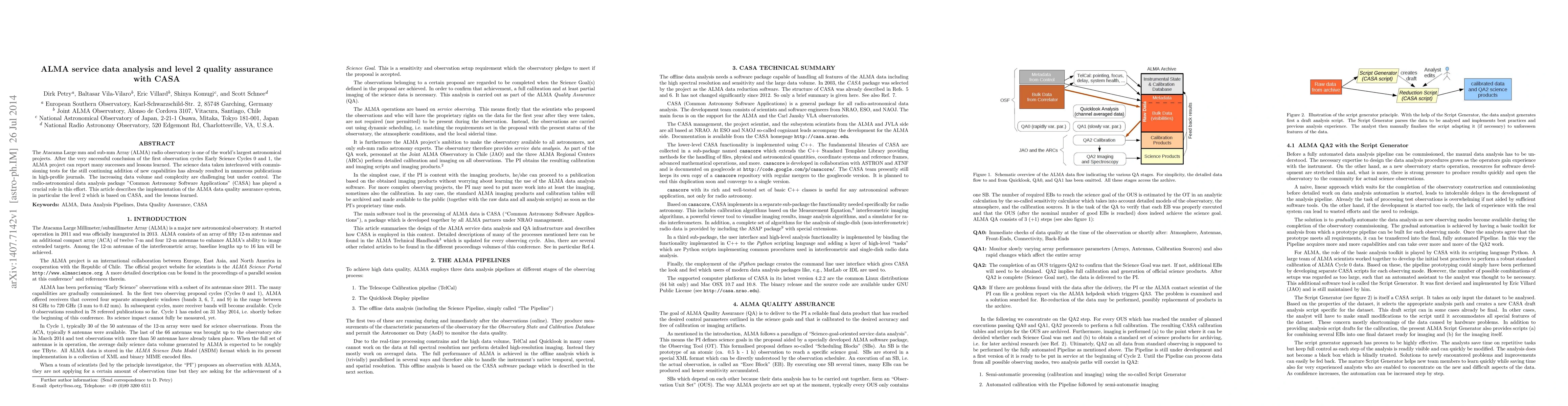 This paper discusses the ALMA observatory's data analysis and level 2 quality assurance processes using the CASA software, highlighting successes and lessons learned from the first observation cycles. It emphasizes the challenges posed by increasing data volume and complexity, which are being managed effectively.