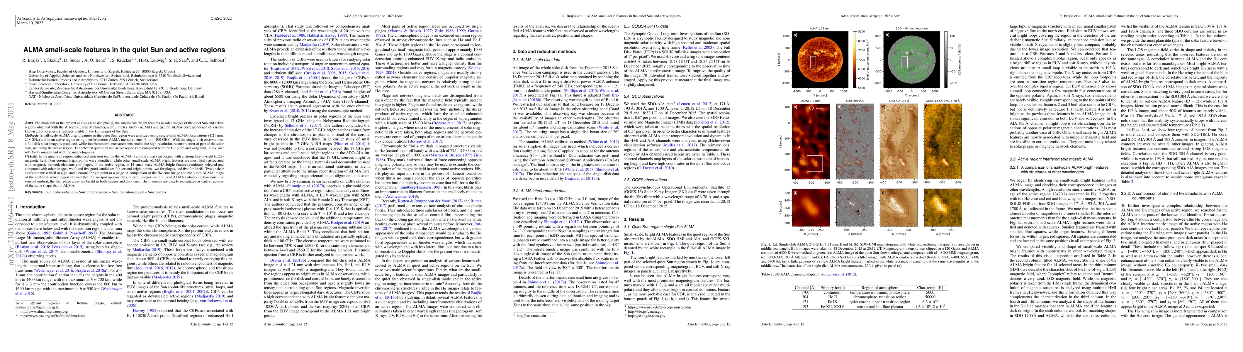 This study investigates small-scale ALMA bright features in solar quiet Sun and active regions, using both single-dish and interferometric observations. Results show that ALMA enhancements correlate with magnetic field strengths and identify coronal bright points, plages, and fibrils, with sunspots appearing dark in both ALMA and H-alpha images, while plage areas remain bright.