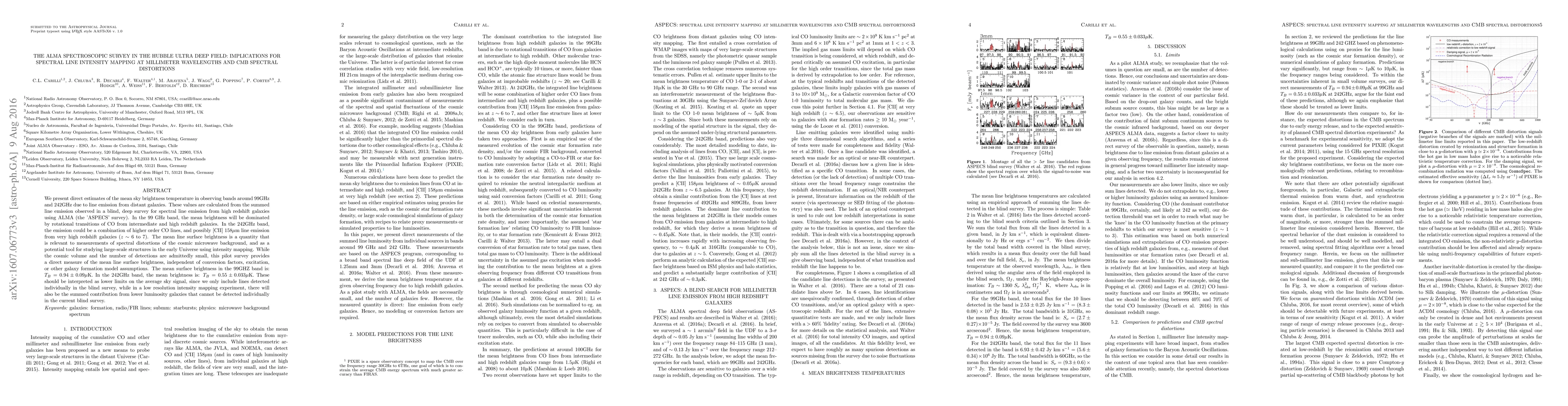 This paper reports direct estimates of mean sky brightness temperatures at 99 GHz and 242 GHz from the ASPECS survey using ALMA, revealing significant line emission from high-redshift galaxies. The findings provide a baseline for spectral line intensity mapping and CMB spectral distortions, with mean brightness values of $T_B = 0.94\pm 0.09$ $\mu$K at 99 GHz and $T_B = 0.55\pm 0.033$ $\mu$K at 242 GHz.