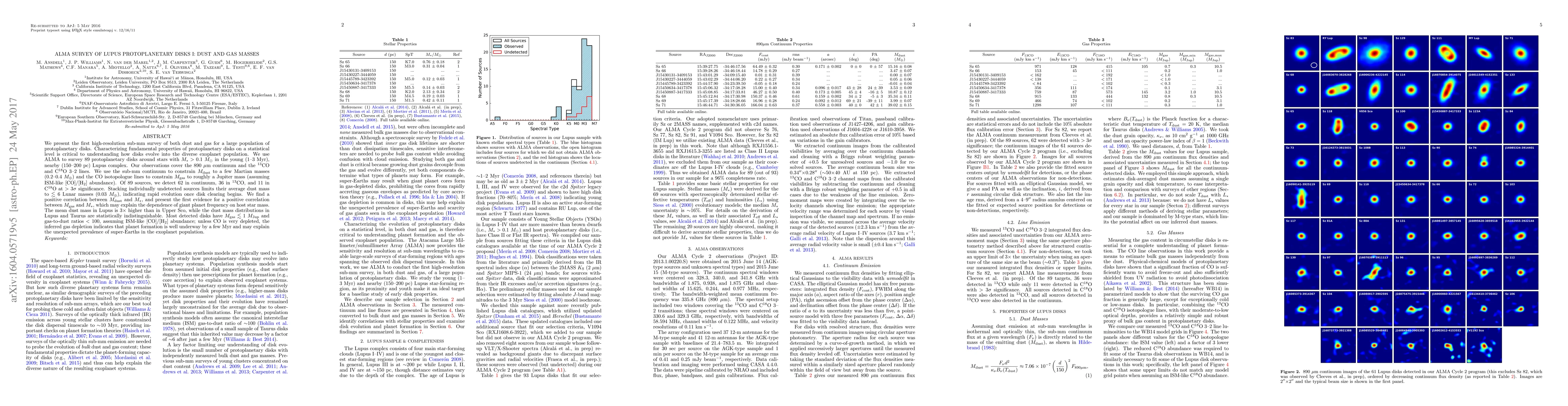 This study uses ALMA to survey 89 protoplanetary disks in the Lupus complex, measuring dust and gas masses to understand disk evolution and planet formation. The findings reveal a positive correlation between dust/gas mass and host star mass, suggesting that planet formation is well underway by a few million years.