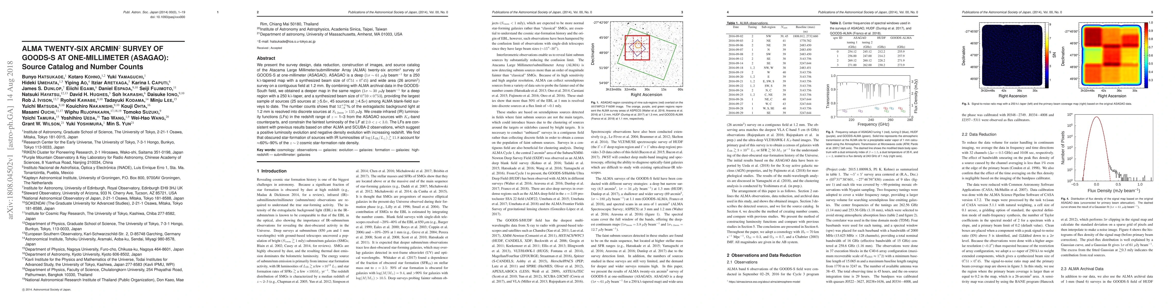 The ASAGAO survey using ALMA provides a deep 1.2 mm map of the GOODS-S region, revealing a large sample of sources and resolving 52% of the extragalactic background light into discrete sources. The infrared luminosity functions suggest significant obscured star-formation activity at z ~ 2, contributing to the cosmic star-formation rate density.