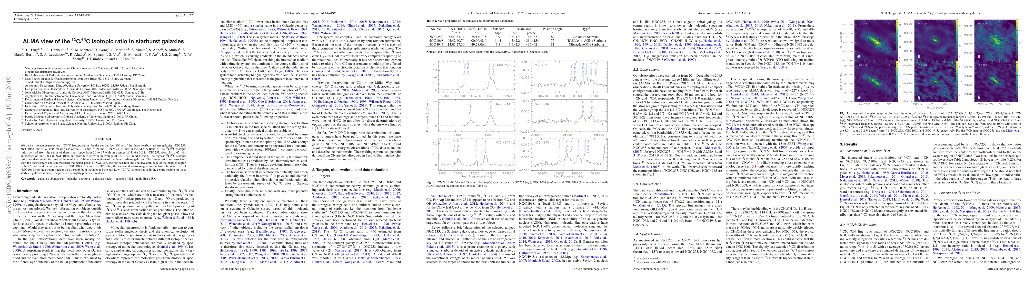The study utilized ALMA Band 3 observations of the $^{12}$CN and $^{13}$CN $N$ = 1--0 lines to derive molecular-gas-phase $^{12}$C/$^{13}$C isotopic ratios in the central regions of starburst galaxies NGC 253, NGC 1068, and NGC 4945.