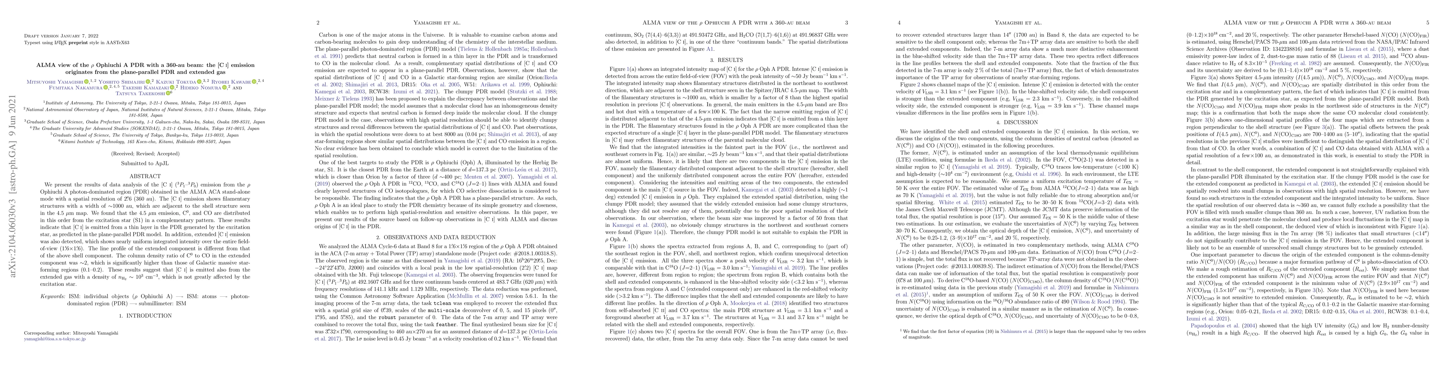 The ALMA observations of the [CI] emission in the $\rho$ Ophiuchi A PDR reveal that it originates from both a thin layer in the plane-parallel PDR and an extended gas component. The extended [CI] emission has a higher C$^0$/CO column density ratio compared to typical Galactic regions, indicating different physical conditions.