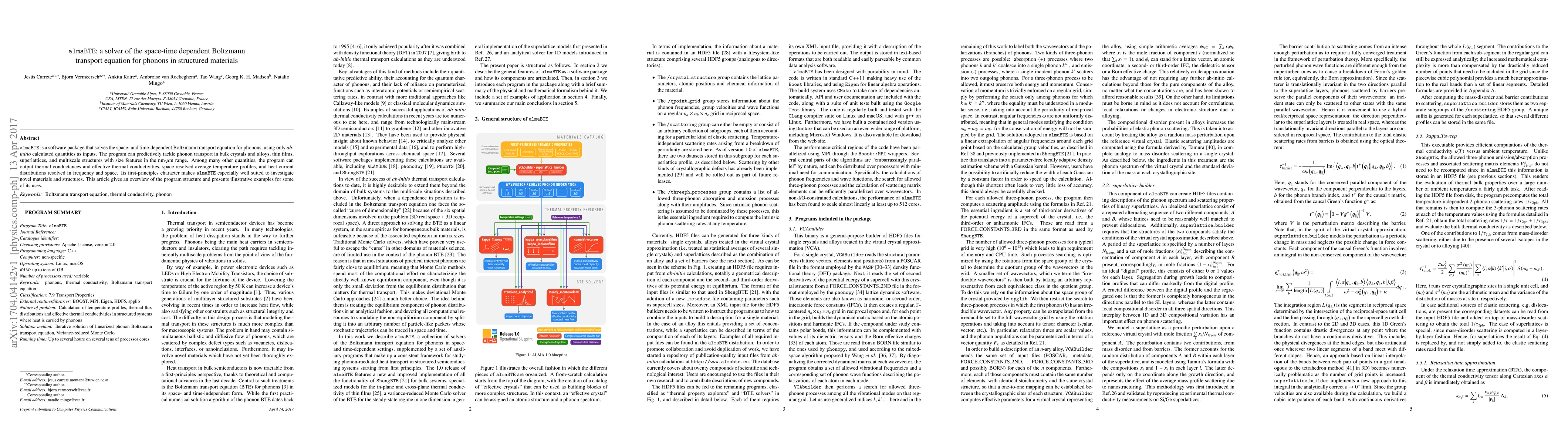 almaBTE is a software package that solves the space- and time-dependent Boltzmann transport equation for phonons, using only ab-initio calculated quantities as inputs. The program can predictively tackle phonon transport in bulk crystals and alloys, thin films, superlattices, and multiscale structures with size features in the nm-$\mu$m range. Among many other quantities, the program can output thermal conductances and effective thermal conductivities, space-resolved average temperature profiles, and heat-current distributions resolved in frequency and space. Its first-principles character makes almaBTE especially well suited to investigate novel materials and structures. This article gives an overview of the program structure and presents illustrative examples for some of its uses.