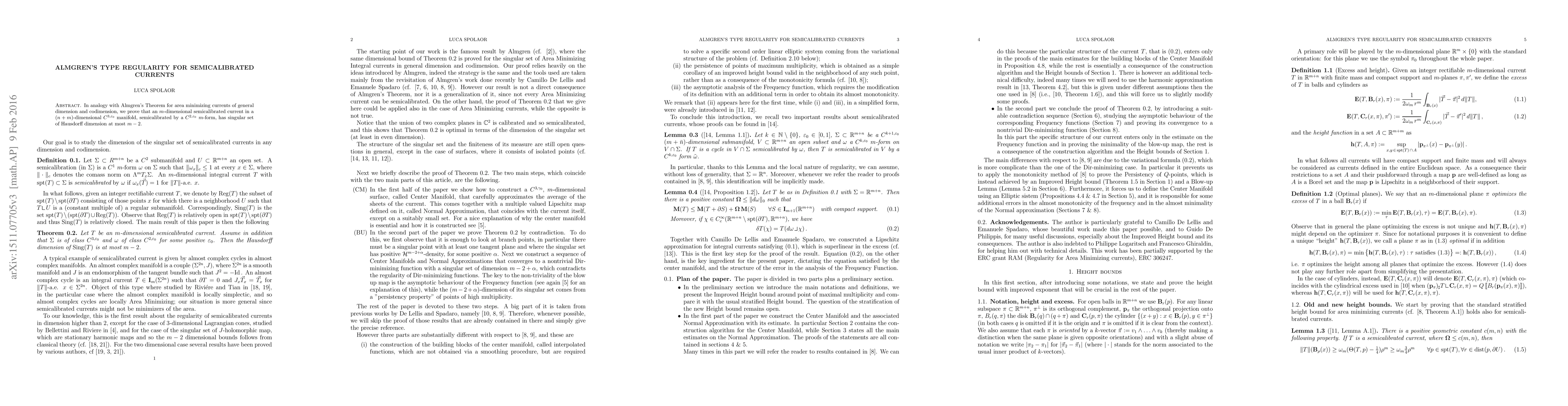 In analogy with Almgren's Theorem for area minimizing currents of general dimension and codimension, we prove that an $m$-dimensional semicalibrated current in a $(n+m)$-dimensional $C^{3,\varepsilon_0}$ manifold, semicalibrated by a $C^{2,\varepsilon_0}$ $m$-form, has singular set of Hausdorff dimension at most $m-2$.