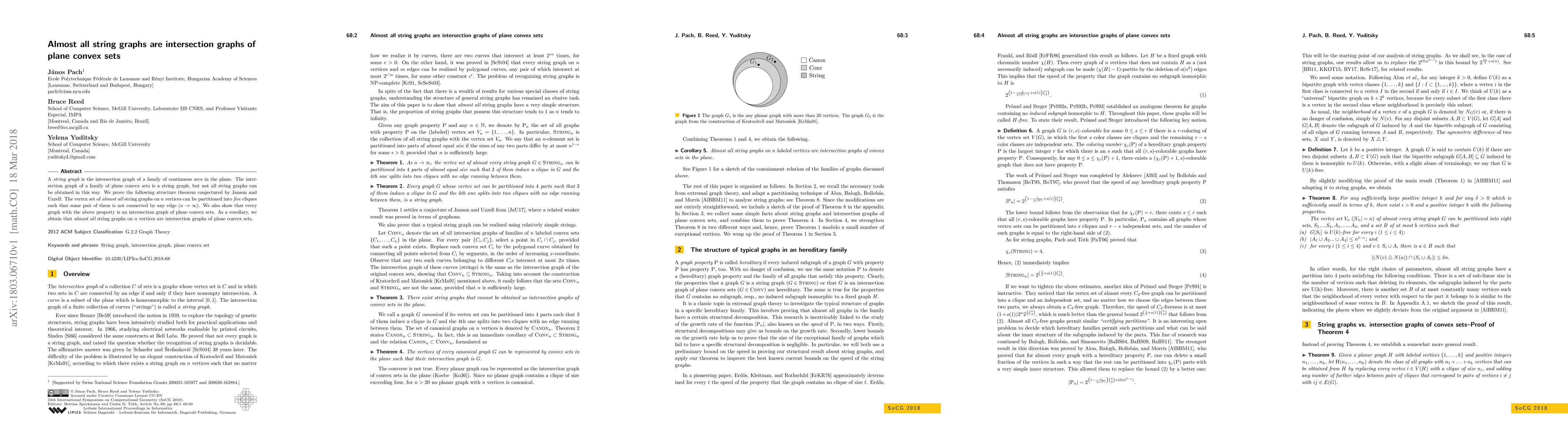 This paper proves that almost all string graphs on a large number of vertices can be partitioned into five cliques with at least one non-edge pair, and demonstrates that such graphs are intersection graphs of plane convex sets. Consequently, it concludes that almost all string graphs are intersection graphs of plane convex sets.