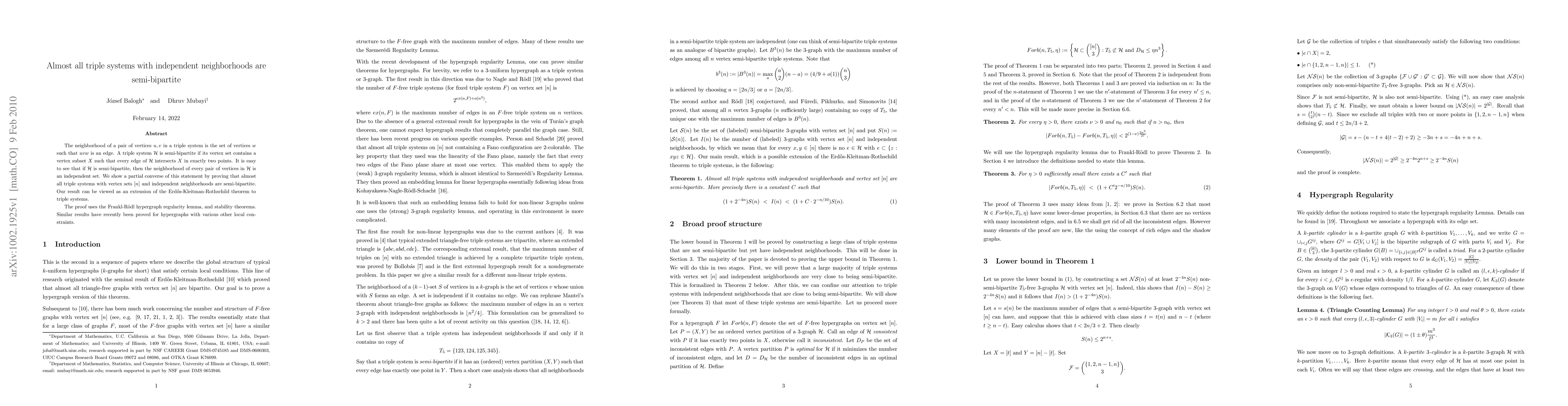 This paper proves that almost all triple systems with independent vertex neighborhoods are semi-bipartite, extending the Erdős-Kleitman-Rothschild theorem to triple systems. The proof leverages the Frankl-Rödl hypergraph regularity lemma and stability theorems.