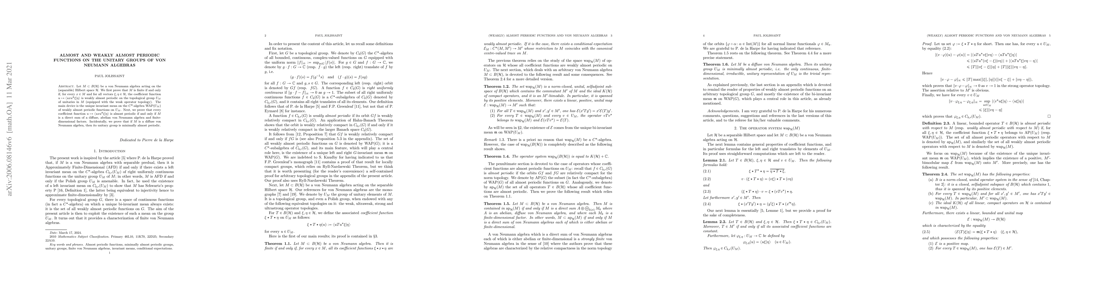 This paper shows that a von Neumann algebra M is finite if its coefficient functions for unitary group U_M are weakly almost periodic, and also provides conditions under which these functions are almost periodic.