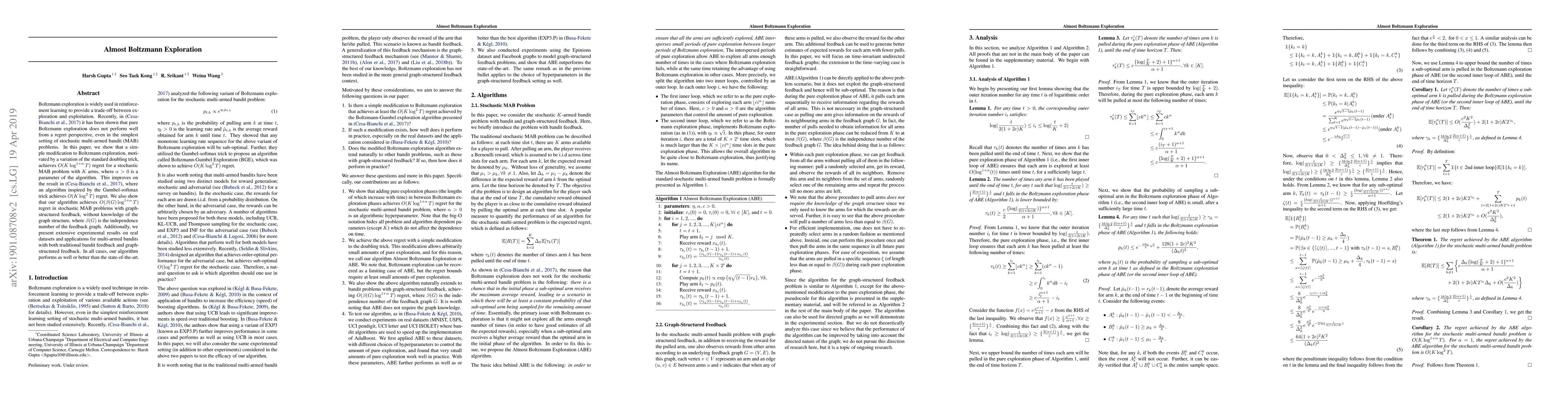 Boltzmann exploration is widely used in reinforcement learning to provide a trade-off between exploration and exploitation. Recently, in (Cesa-Bianchi et al., 2017) it has been shown that pure Boltzmann exploration does not perform well from a regret perspective, even in the simplest setting of stochastic multi-armed bandit (MAB) problems. In this paper, we show that a simple modification to Boltzmann exploration, motivated by a variation of the standard doubling trick, achieves $O(K\log^{1+\alpha} T)$ regret for a stochastic MAB problem with $K$ arms, where $\alpha>0$ is a parameter of the algorithm. This improves on the result in (Cesa-Bianchi et al., 2017), where an algorithm inspired by the Gumbel-softmax trick achieves $O(K\log^2 T)$ regret. We also show that our algorithm achieves $O(\beta(G) \log^{1+\alpha} T)$ regret in stochastic MAB problems with graph-structured feedback, without knowledge of the graph structure, where $\beta(G)$ is the independence number of the feedback graph. Additionally, we present extensive experimental results on real datasets and applications for multi-armed bandits with both traditional bandit feedback and graph-structured feedback. In all cases, our algorithm performs as well or better than the state-of-the-art.