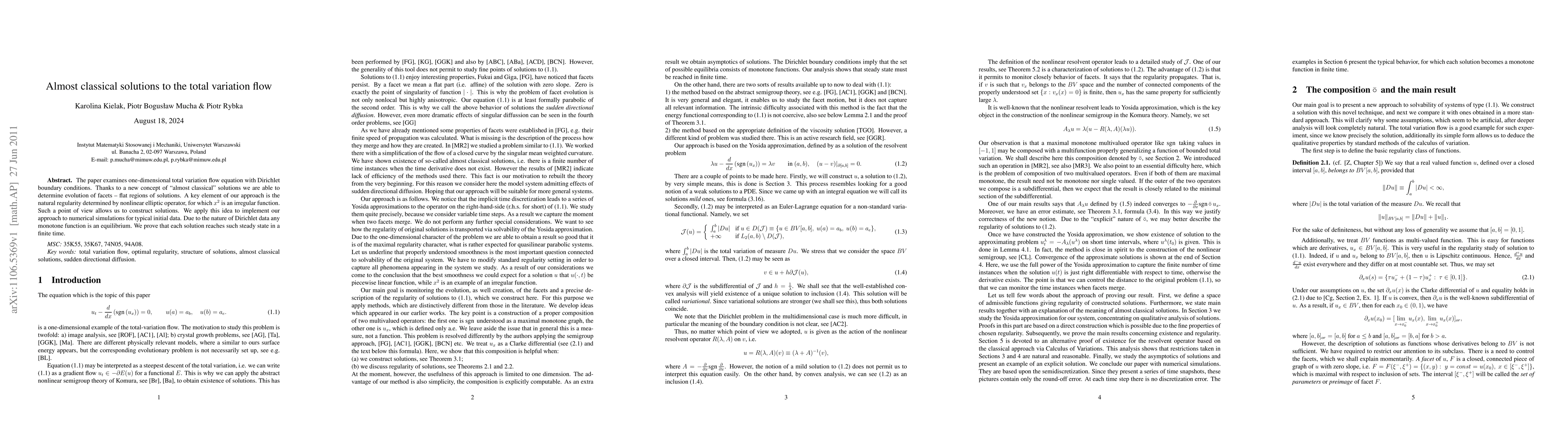 The research paper introduces 'almost classical' solutions to analyze the one-dimensional total variation flow equation with Dirichlet boundary conditions, effectively tracking facet evolution. It demonstrates that any monotone function becomes an equilibrium under Dirichlet data, proving finite-time convergence to steady states through a novel approach leveraging nonlinear elliptic operator regularity.