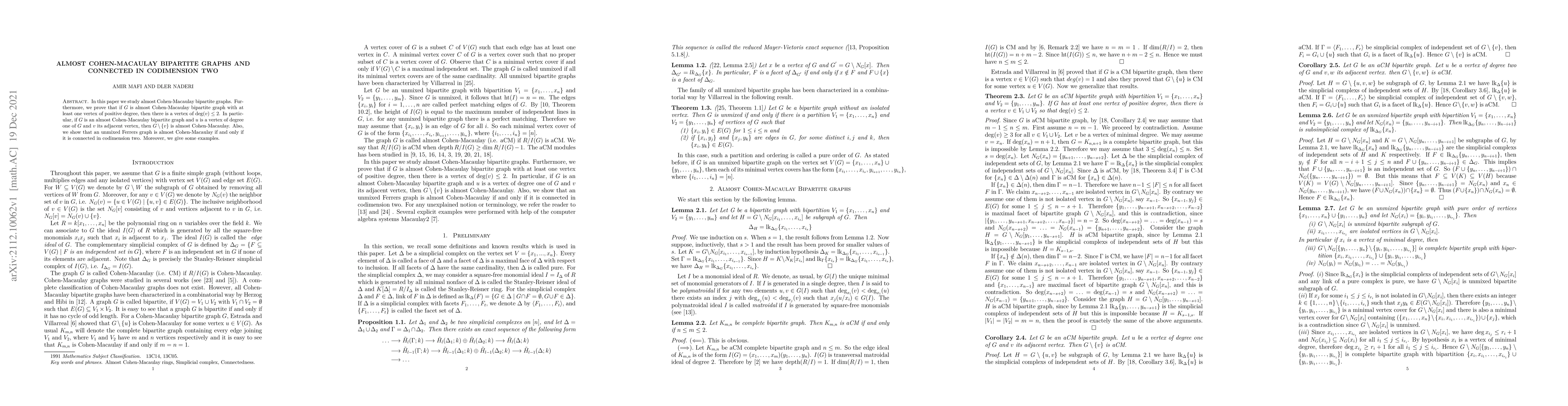 This paper investigates almost Cohen-Macaulay bipartite graphs, proving that such graphs with a vertex of positive degree must have a vertex of degree ≤ 2. It also demonstrates that removing a degree-one vertex from an almost Cohen-Macaulay bipartite graph leaves an almost Cohen-Macaulay structure and establishes a connection between unmixed Ferrers graphs and their almost Cohen-Macaulay properties in codimension two.