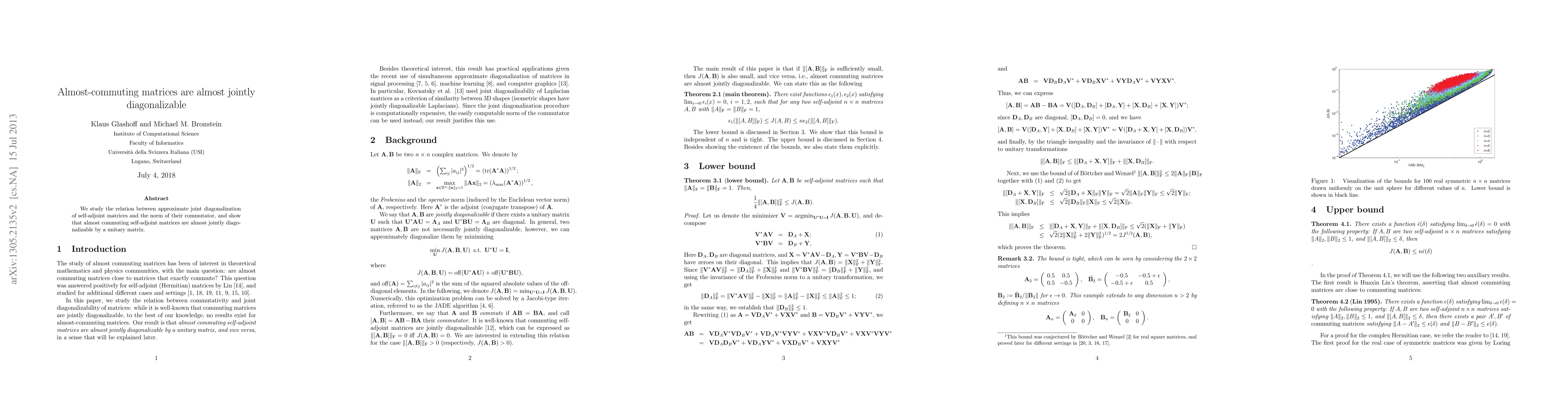 This paper demonstrates that self-adjoint matrices that nearly commute have a norm of their commutator that is small, and consequently, they can be nearly jointly diagonalized by a unitary matrix. The findings establish a connection between the commutator norm and the degree of joint diagonalizability.