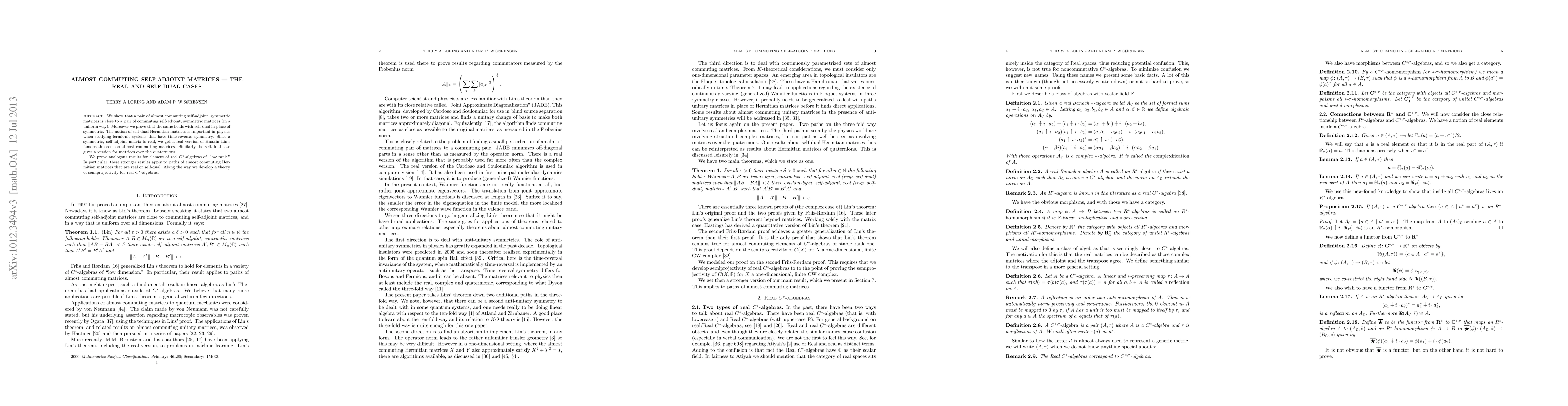 Summary: This paper demonstrates that pairs of almost commuting self-adjoint, symmetric matrices are close to commuting pairs and extends this result to self-dual Hermitian matrices, which are significant in physics for fermionic systems with time reversal symmetry. Additionally, it presents analogous findings for real C*-algebras of low rank, including paths of real or self-dual Hermitian matrices, and develops a theory of semiprojectivity for real C*-algebras.