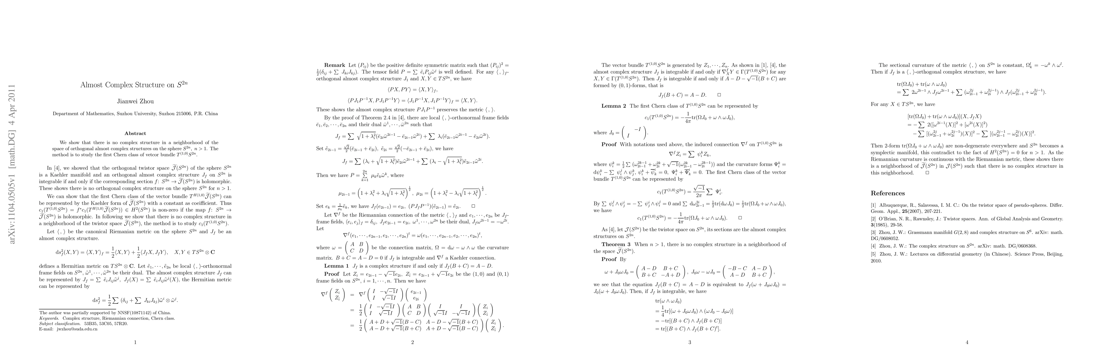 Research shows that there is no complex structure in a neighborhood of orthogonal almost complex structures on the sphere $S^{2n}$ for n > 1, indicating a fundamental limit on possible geometric configurations.