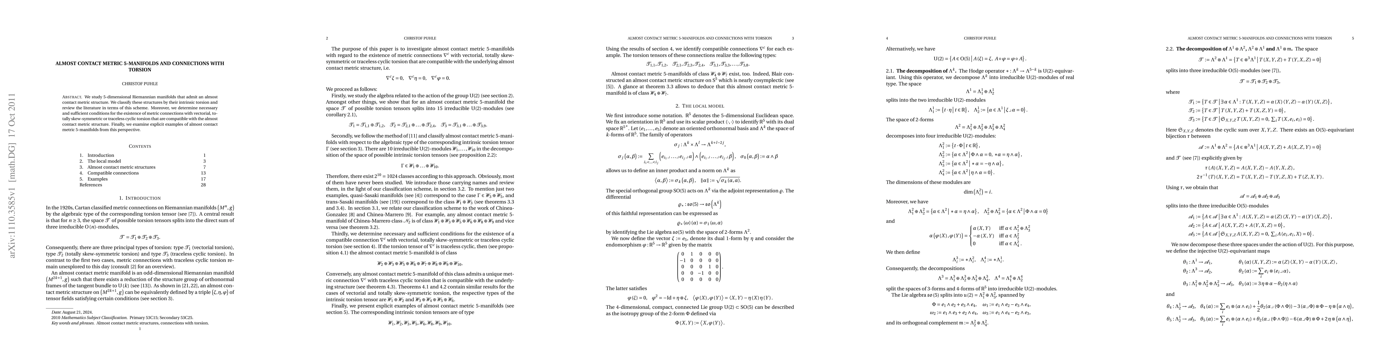 We study 5-dimensional Riemannian manifolds that admit an almost contact metric structure. We classify these structures by their intrinsic torsion and review the literature in terms of this scheme. Moreover, we determine necessary and sufficient conditions for the existence of metric connections with vectorial, totally skew-symmetric or traceless cyclic torsion that are compatible with the almost contact metric structure. Finally, we examine explicit examples of almost contact metric 5-manifolds from this perspective.