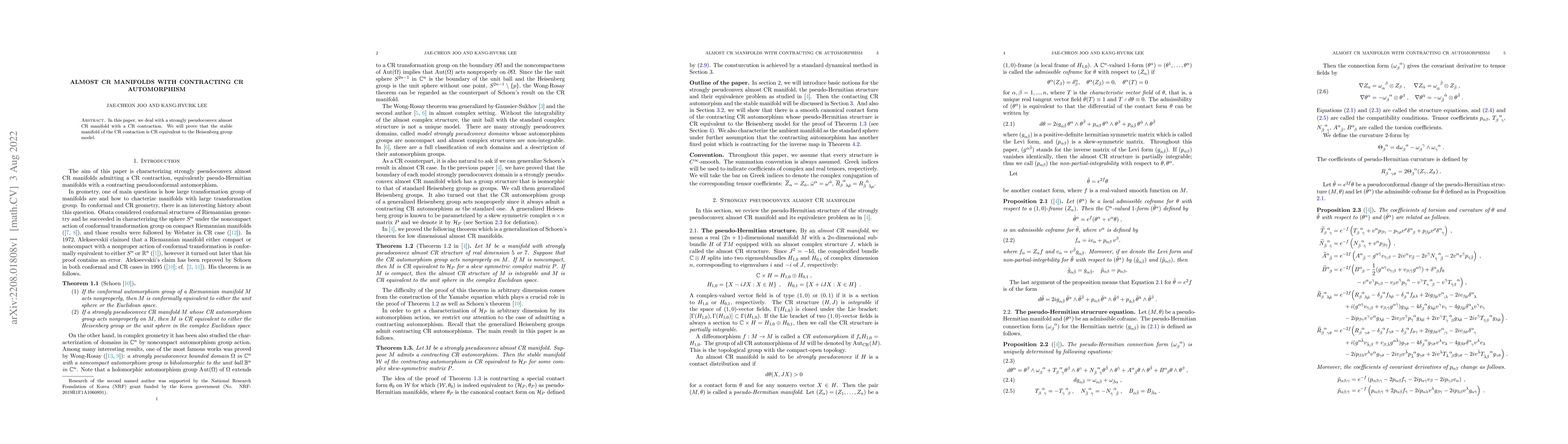 Summary: This paper investigates a strongly pseudoconvex almost CR manifold featuring a CR contraction, proving that the stable manifold of this contraction is CR equivalent to the Heisenberg group model.