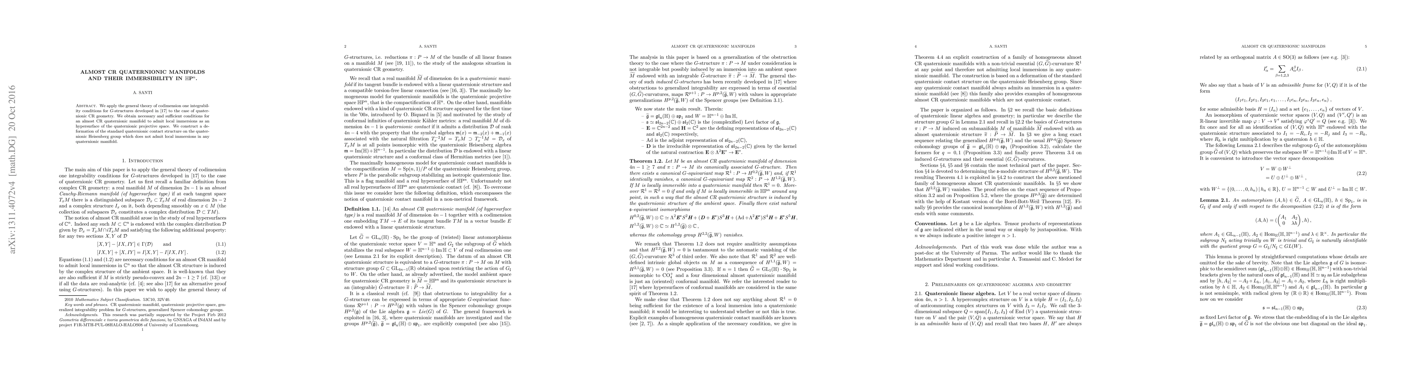 We apply the general theory of codimension one integrability conditions for $G$-structures developed in arXiv:1306.6817v3 [math.DG] to the case of quaternionic CR geometry. We obtain necessary and sufficient conditions for an almost CR quaternionic manifold to admit local immersions as an hypersurface of the quaternionic projective space. We construct a deformation of the standard quaternionic contact structure on the quaternionic Heisenberg group which does not admit local immersions in any quaternionic manifold.