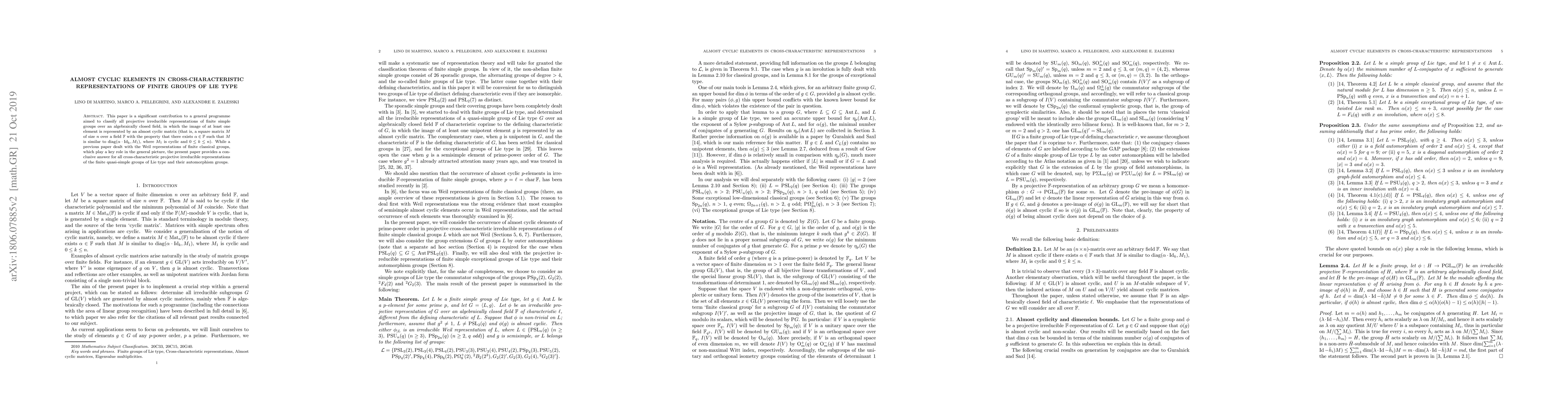 This paper is a significant contribution to a general programme aimed to classify all projective irreducible representations of finite simple groups over an algebraically closed field, in which the image of at least one element is represented by an almost cyclic matrix (that is, a square matrix $M$ of size $n$ over a field $F$ with the property that there exists $\alpha\in F$ such that $M$ is similar to $diag(\alpha \cdot Id_k, M_1)$, where $M_1$ is cyclic and $0\leq k\leq n$). While a previous paper dealt with the Weil representations of finite classical groups, which play a key role in the general picture, the present paper provides a conclusive answer for all cross-characteristic projective irreducible representations of the finite quasi-simple groups of Lie type and their automorphism groups.
