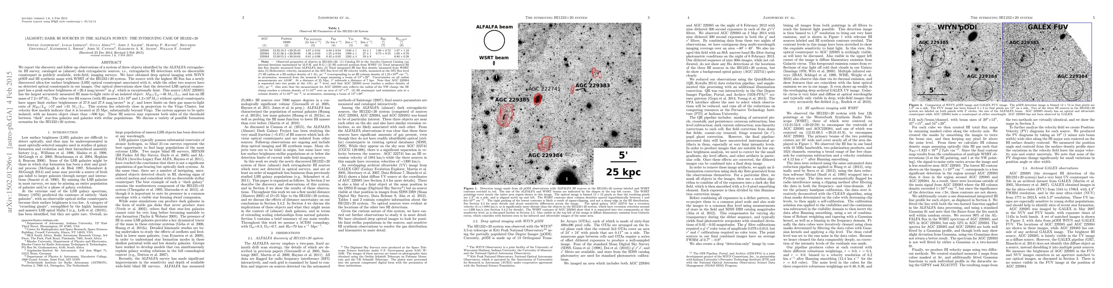 We report the discovery and follow-up observations of a system of three objects identified by the ALFALFA extragalactic HI survey, cataloged as (almost) dark extragalactic sources, i.e., extragalactic HI detections with no discernible counterpart in publicly available, wide-field, imaging surveys. We have obtained deep optical imaging with WIYN pODI and HI synthesis maps with WSRT of the HI1232+20 system. The source with the highest HI flux has a newly discovered ultra-low surface brightness (LSB) optical counterpart associated with it, while the other two sources have no detected optical counterparts in our images. Our optical observations show that the detected LSB optical counterpart has a peak surface brightness of ~26.4 mag/arcsec^2 in g', which is exceptionally faint. This source (AGC 229385) has the largest accurately measured HI mass-to-light ratio of an isolated object: MHI/Lg'=46 Msun/Lsun, and has an HI mass of 7.2*10^8 Msun. The other two HI sources (with HI masses 2.0*10^8 and 1.2*10^8 Msun) without optical counterparts have upper limit surface brightnesses of 27.9 and 27.8 mag/arcsec^2 in g', and lower limits on their gas mass-to-light ratio of MHI/Lg'>57 and >31 Msun/Lsun. This system lies relatively close in projection to the Virgo Cluster, but velocity flow models indicate that it is located at ~25 Mpc, substantially beyond Virgo. The system appears to be quite isolated, with no known object closer than 500 kpc. These HI sources may represent both sides of the threshold between "dark" star-less galaxies and galaxies with stellar populations. We discuss a variety of possible formation scenarios for the HI1232+20 system.