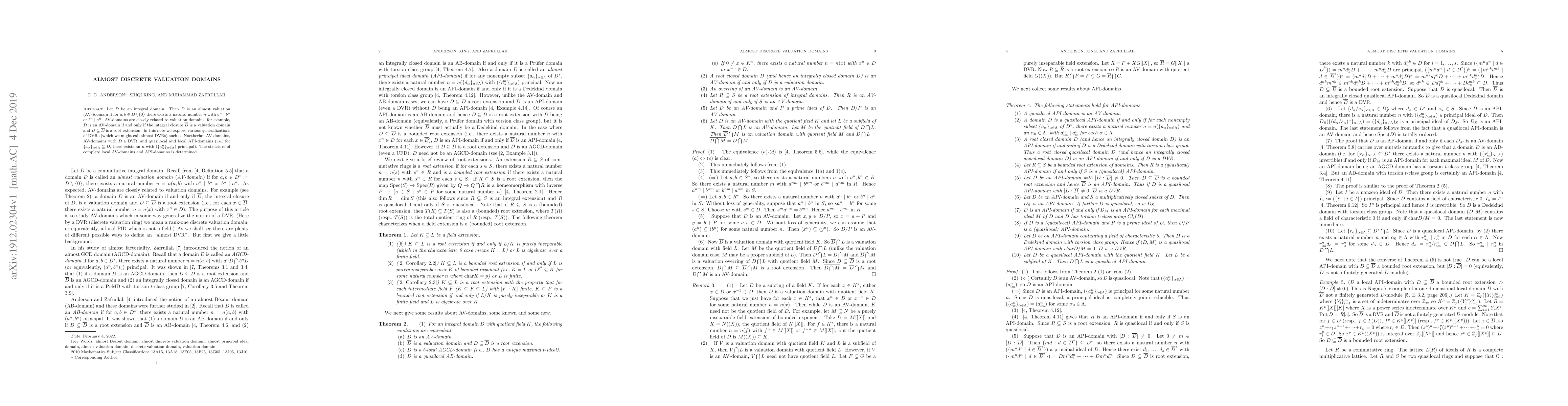 This paper explores almost valuation domains, generalizing discrete valuation rings with various conditions such as Noetherian properties and quasilocal local API-domains. It determines the structure of complete local AV-domains and API-domains.