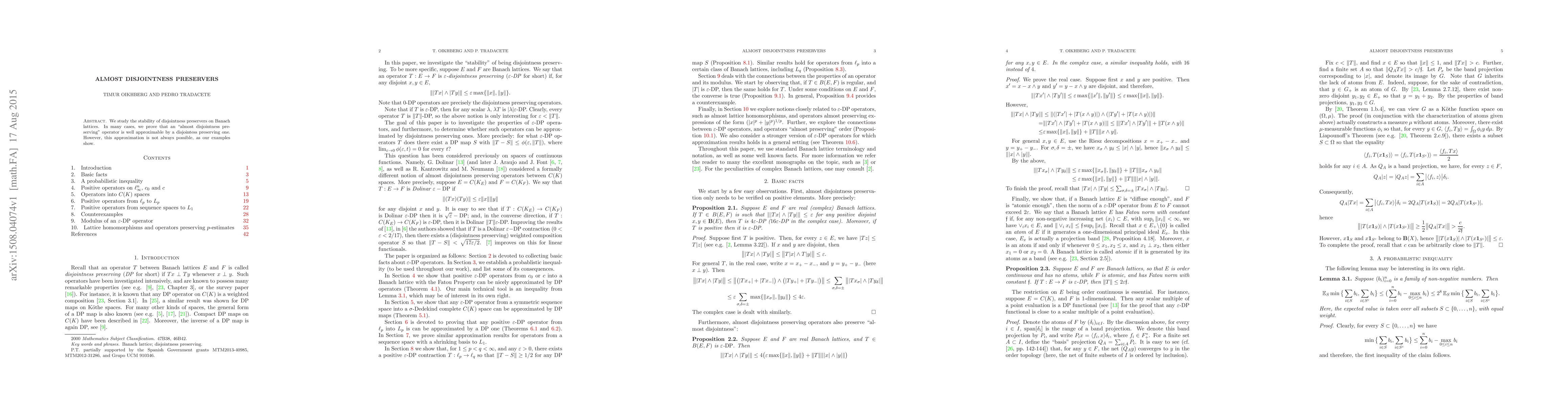 This research explores the stability of operators preserving disjointness in Banach lattices, proving that 'almost disjointness preservers' can often be approximated by true disjointness preservers, though exceptions exist as demonstrated by counterexamples.