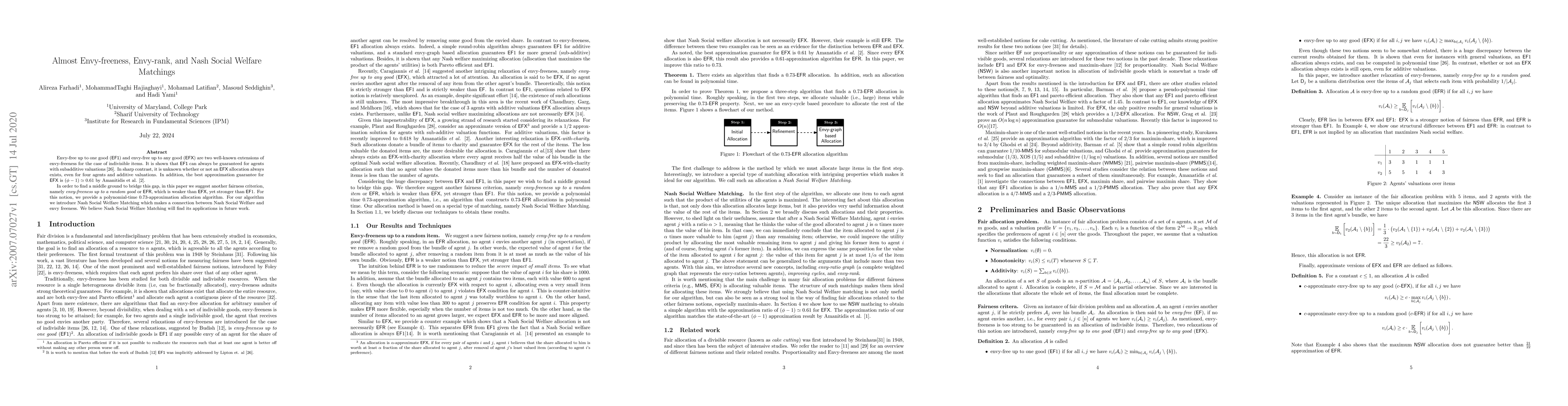 This paper introduces a new fairness criterion called envy-freeness up to a random good (EFR) as a middle ground between EF1 and EFX. It presents a polynomial-time $0.73$-approximation algorithm for EFR allocations using Nash Social Welfare Matching, suggesting potential future applications.