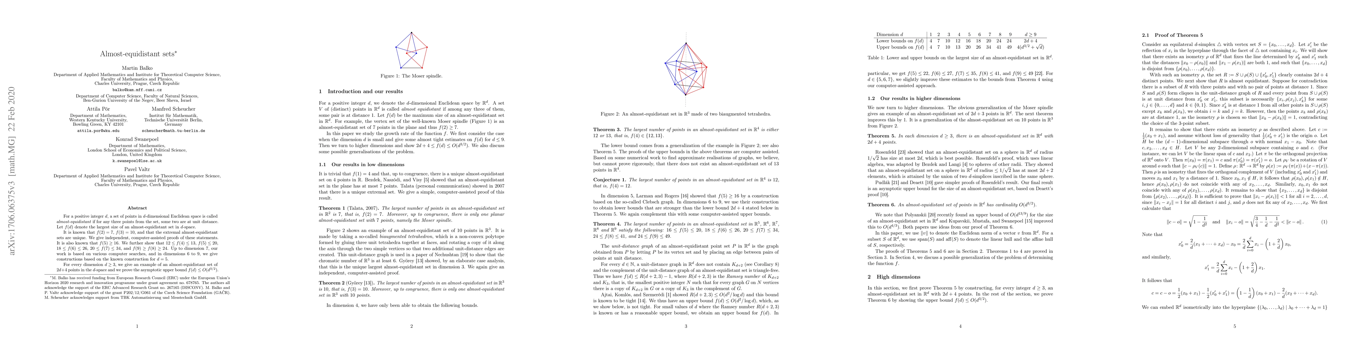 This paper investigates almost-equidistant sets in $d$-dimensional Euclidean space, where any three points from the set must have at least two at unit distance. The authors provide computer-assisted proofs for the largest sizes of such sets in dimensions up to $7$, and establish bounds for higher dimensions, including $f(4) \in [12,13]$ and $f(5) \le 20$. They also present an asymptotic upper bound $f(d) \le O(d^{3/2})$.