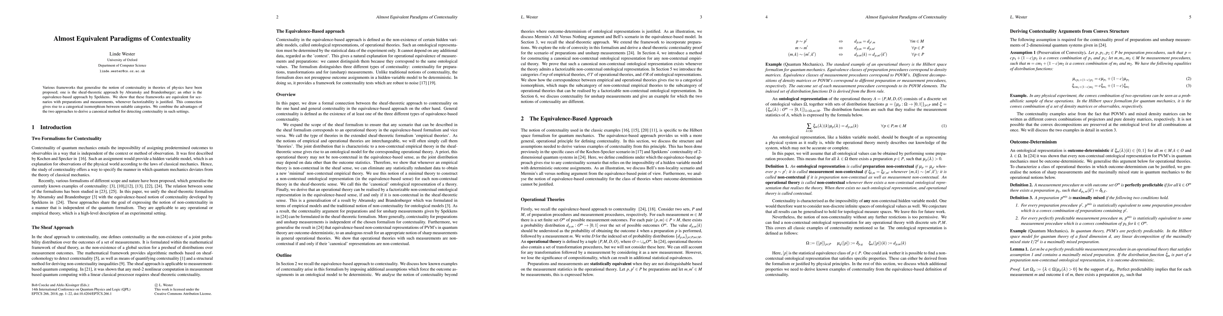 Various frameworks that generalise the notion of contextuality in theories of physics have been proposed; one is the sheaf-theoretic approach by Abramsky and Brandenburger; an other is the equivalence-based approach by Spekkens. We show that these frameworks are equivalent for scenarios with preparations and measurements, whenever factorizability is justified. This connection gives rise to a categorical isomorphism between suitable categories. We combine the advantages of the two approaches to derive a canonical method for detecting contextuality in such settings.