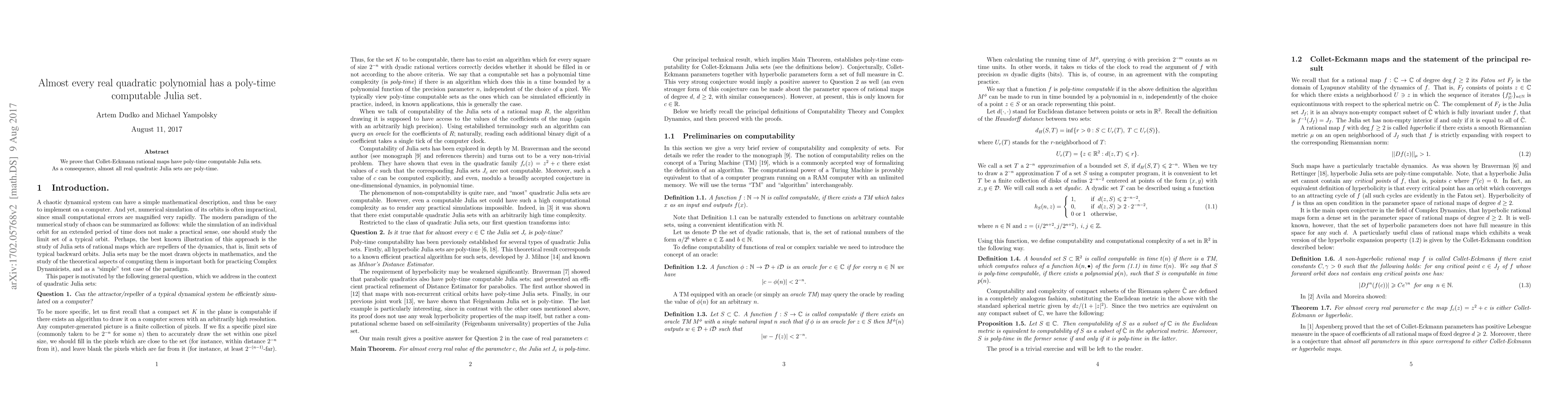 Summary: The paper proves that Collet-Eckmann rational maps possess poly-time computable Julia sets, leading to the conclusion that almost all real quadratic Julia sets can also be computed in polynomial time.