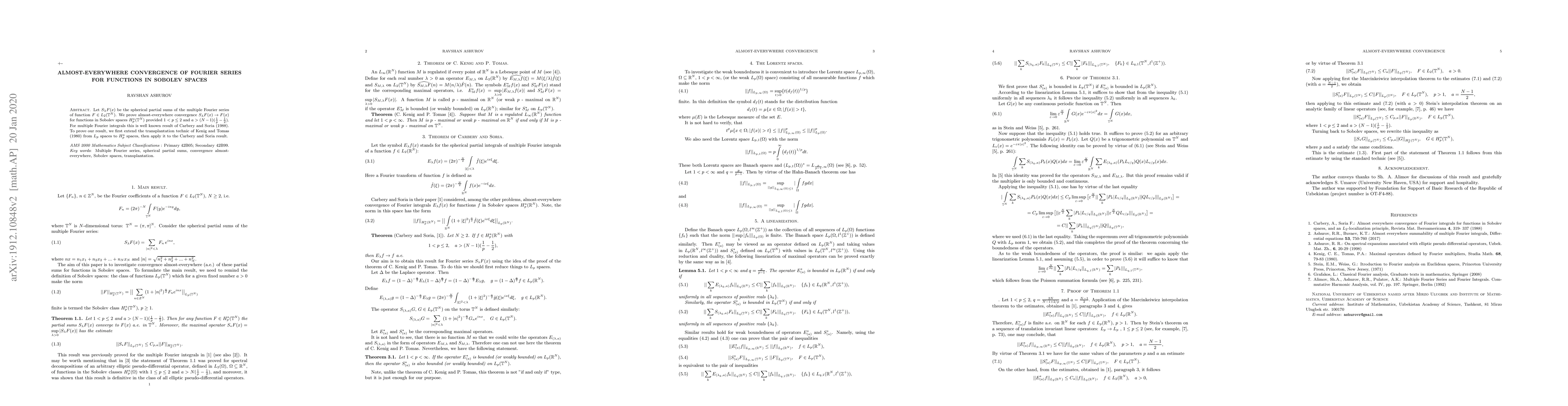 This paper proves almost-everywhere convergence of spherical partial sums for Fourier series of functions in Sobolev spaces $H_p^a(\mathbb{T}^N)$ under certain conditions on $p$ and $a$. The result extends the transplantation technique from $L_p$ to $H_p^a$ spaces, adapting a known result for Fourier integrals.