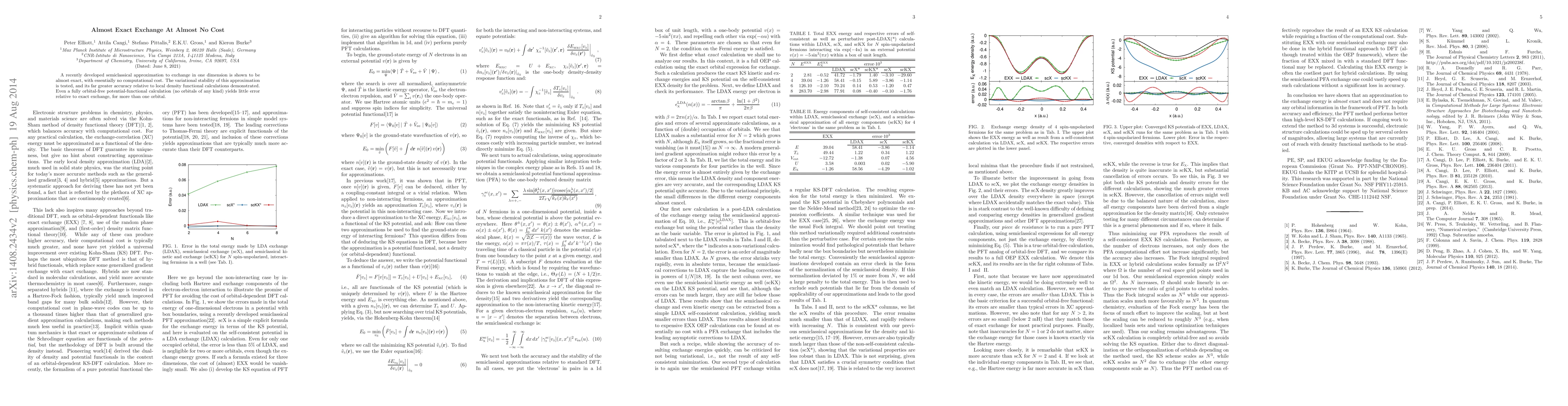 A recently developed semiclassical approximation to exchange in one dimension is shown to be almost exact, with essentially no computational cost. The variational stability of this approximation is tested, and its far greater accuracy relative to local density functional calculations demonstrated. Even a fully orbital-free potential-functional calculation (no orbitals of any kind) yields little error relative to exact exchange, for more than one orbital.