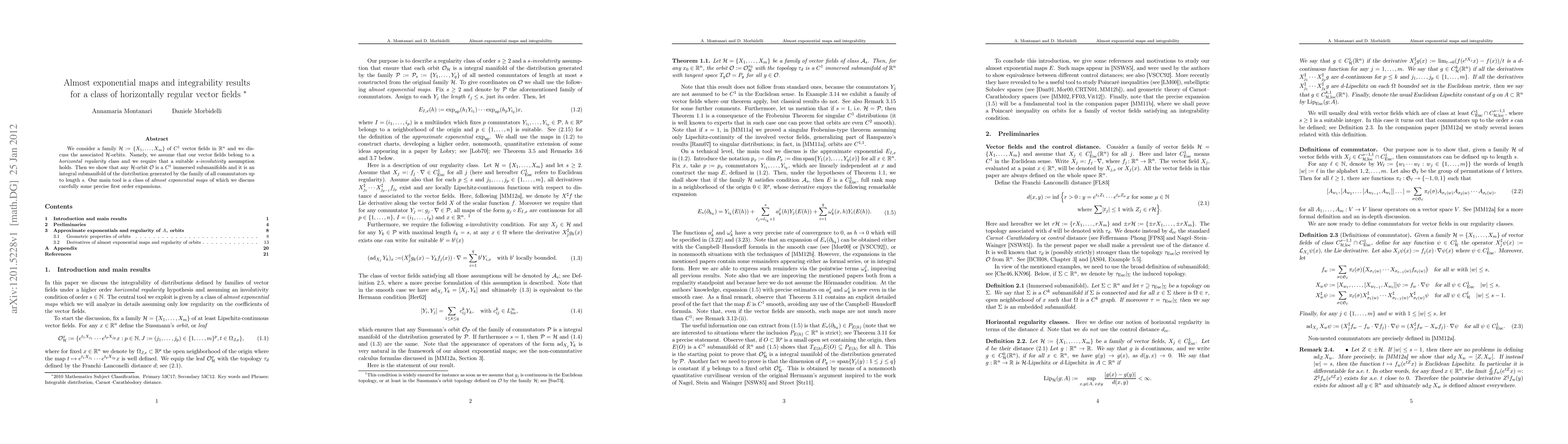 A research paper establishes a higher-order integrability theorem for vector fields under horizontal regularity assumptions, using almost exponential maps to analyze their properties.