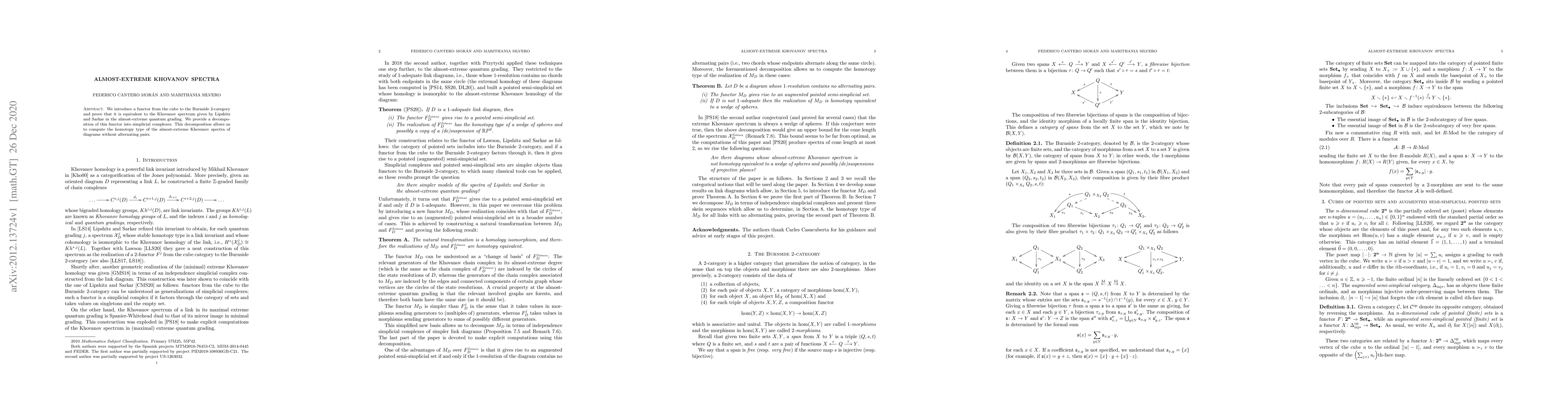 This paper introduces a functor from the cube to the Burnside 2-category and proves its equivalence to the Khovanov spectrum in the almost-extreme quantum grading. It decomposes this functor into simplicial complexes to compute the homotopy type of almost-extreme Khovanov spectra for non-alternating diagrams.