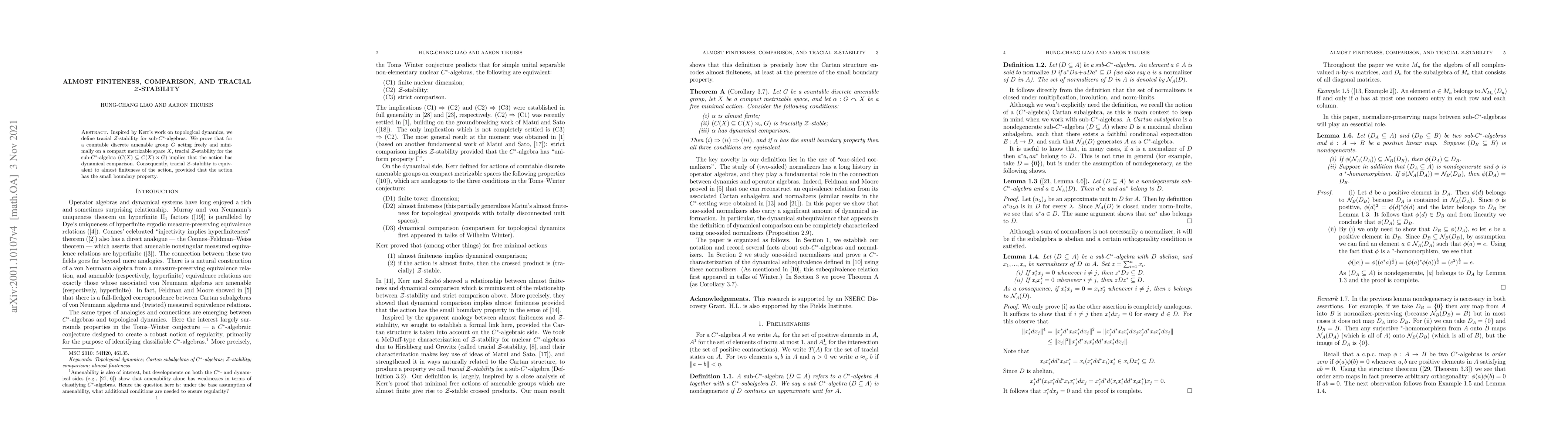 Inspired by Kerr's work on topological dynamics, we define tracial $\mathcal{Z}$-stability for sub-$C^*$-algebras. We prove that for a countable discrete amenable group $G$ acting freely and minimally on a compact metrizable space $X$, tracial $\mathcal{Z}$-stability for the sub-$C^*$-algebra $(C(X)\subseteq C(X)\rtimes G)$ implies that the action has dynamical comparison. Consequently, tracial $\mathcal{Z}$-stability is equivalent to almost finiteness of the action, provided that the action has the small boundary property.