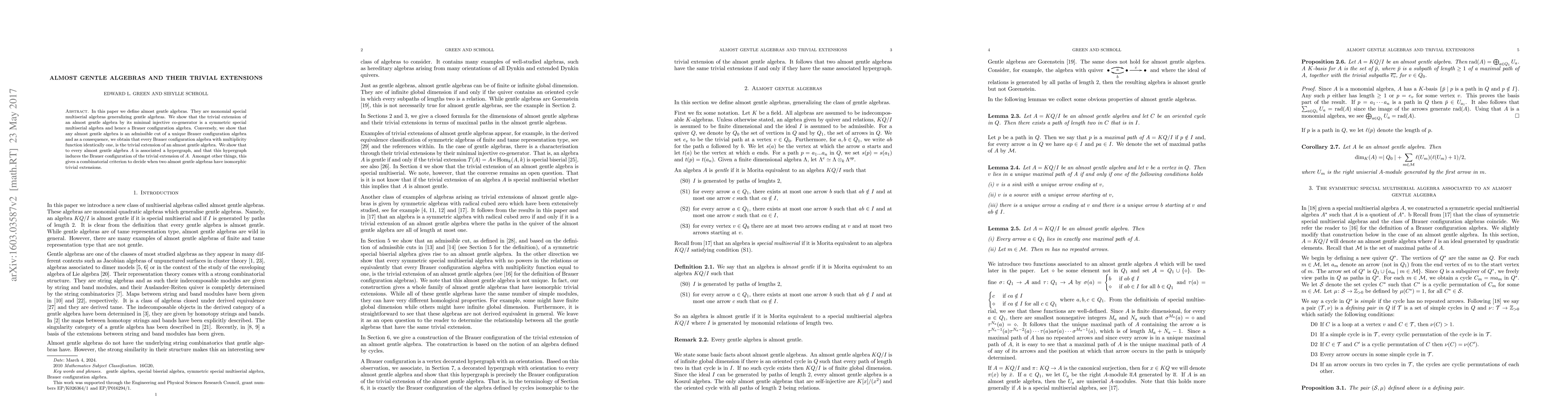 The paper introduces almost gentle algebras, a generalization of gentle algebras, and demonstrates their relationship with trivial extensions and Brauer configuration algebras. It establishes a combinatorial criterion for determining when the trivial extensions of almost gentle algebras are isomorphic.