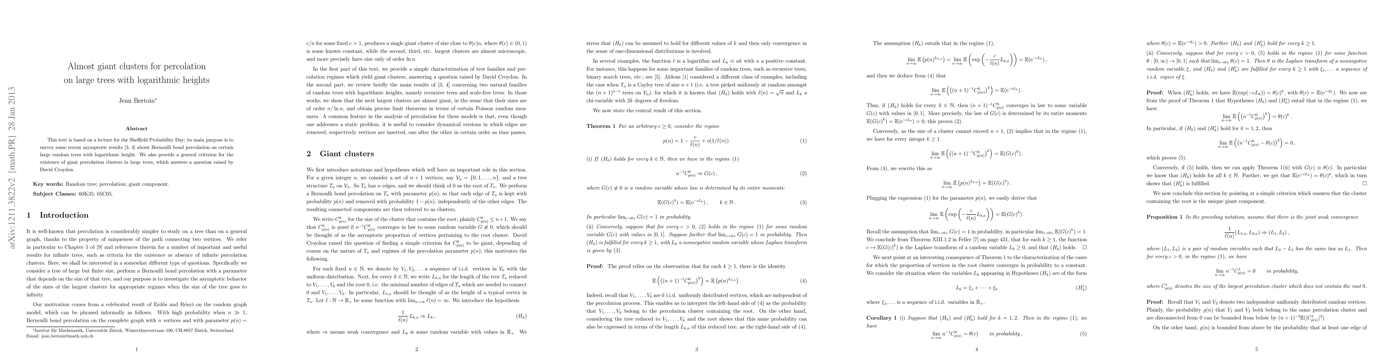 This paper surveys recent findings on Bernoulli bond percolation on large random trees with logarithmic heights and presents a general criterion for the existence of giant percolation clusters, addressing a question posed by David Croydon.