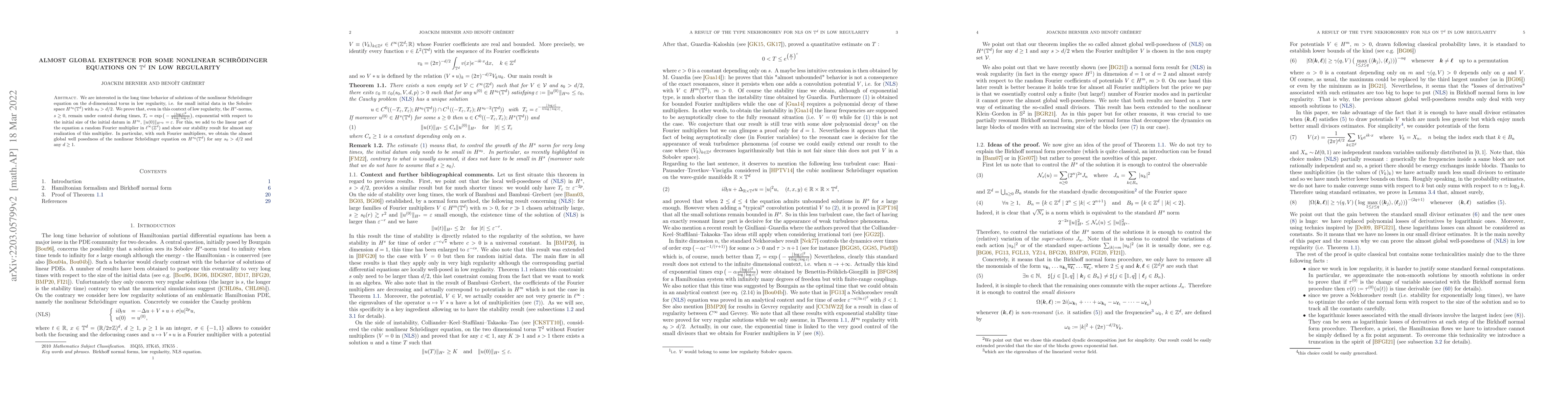This paper investigates the long-term behavior of solutions to nonlinear Schrödinger equations on $d$-dimensional torus with low regularity initial data. It demonstrates almost global existence by showing that $H^s$ norms remain controlled for exponential time, using a random Fourier multiplier to achieve stability.