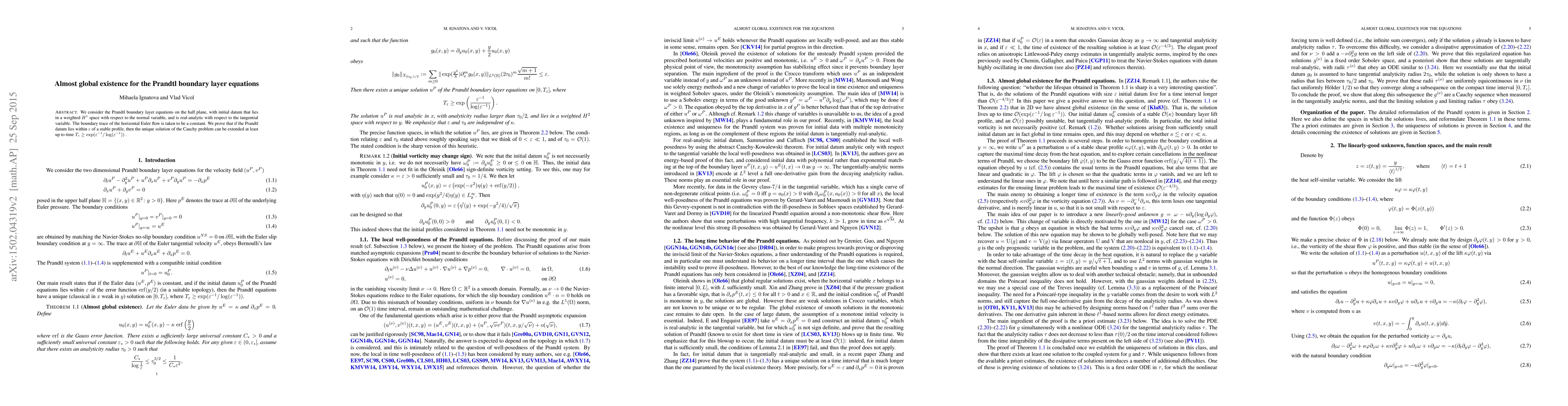 Summary: This paper proves the almost global existence of solutions to the Prandtl boundary layer equations when initial data is close to a stable profile, showing that solutions can be extended up to time $T_\varepsilon$ which grows exponentially with the inverse of the initial deviation from the stable profile.